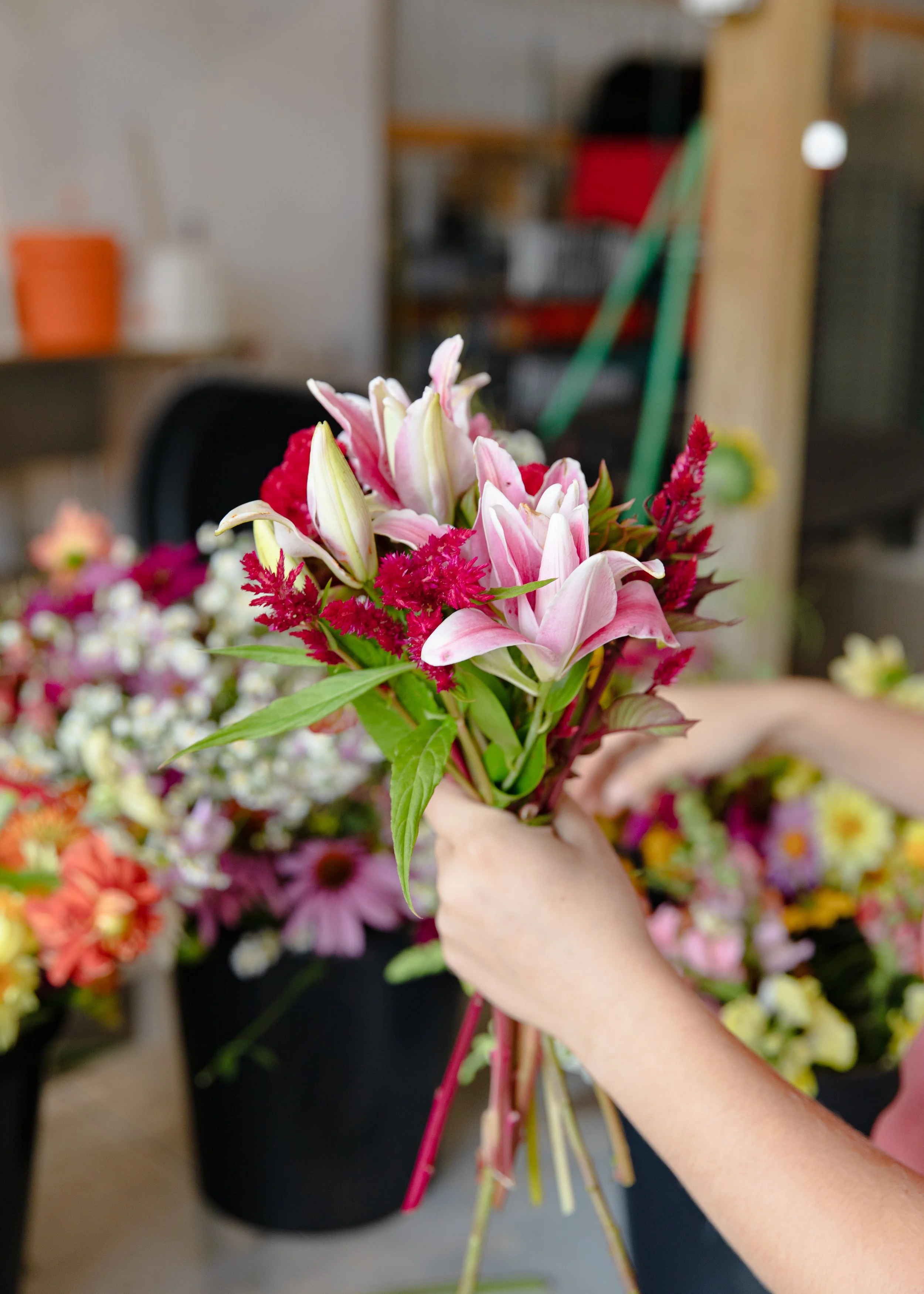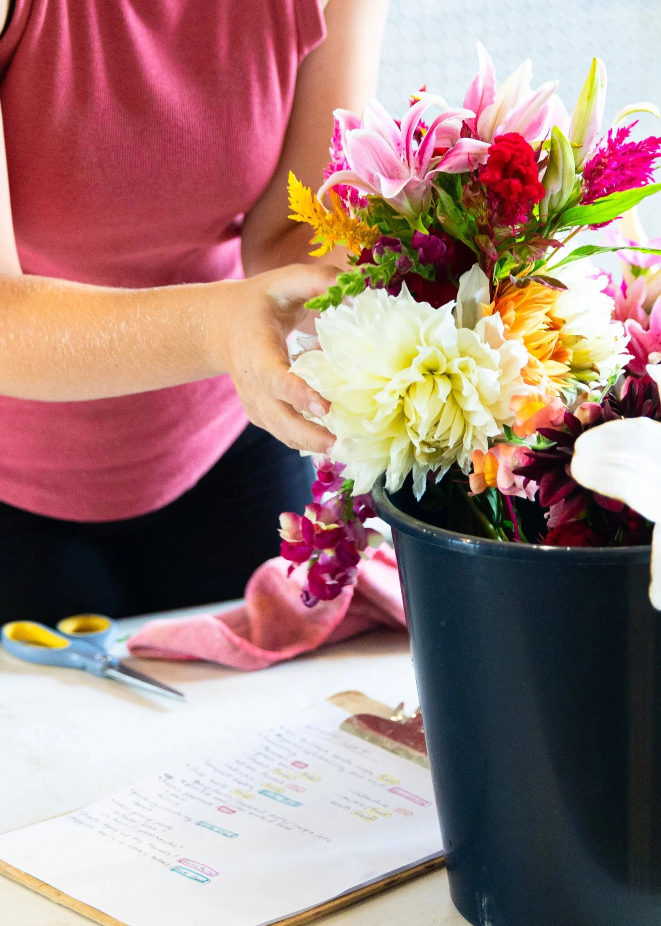 Great for baby showers or bridal showers! We bring tons of cut flowers and you bring the creative flow to build beautiful bouquets.